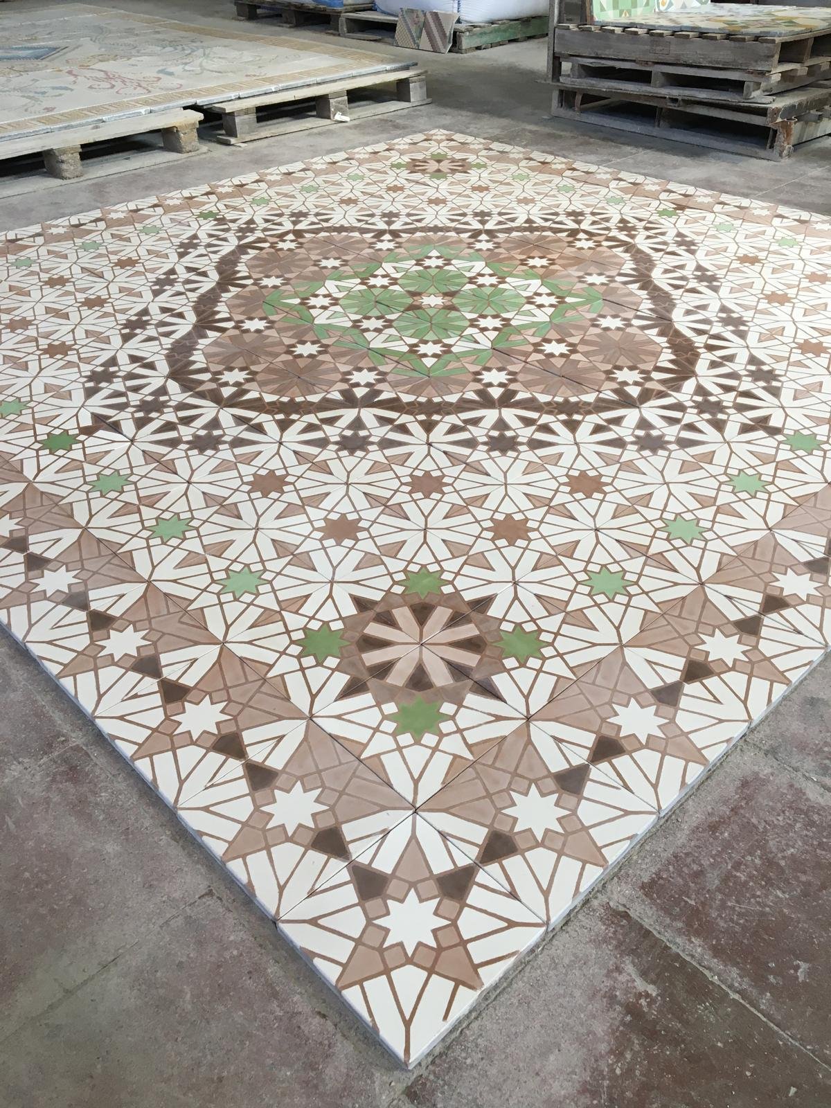 Nuestro ARTESANO esta especializado en este tipo de mosaico, los retos motivan nuestro día a día, consiguiendo reflejar cualquier motivo en baldosas hidráulicas. Trabajo minucioso, que entregamos numerado para que el solador pueda colocar con facilidad.