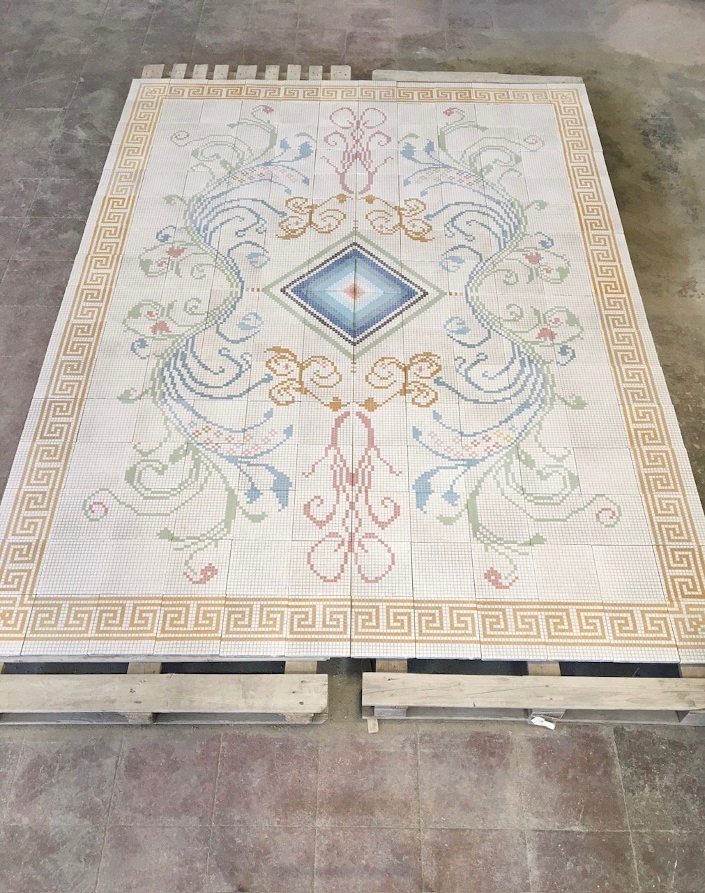 Hay proyectos que nos conquistan, se convierten en retos que hacen que nos superemos en todos los aspectos.... Ponemos el corazón desde que comenzamos el diseño hasta ver avanzar estos solados tan especiales, agradeciendo la confianza depositada en nuestra casa. Estudiamos cualquier diseño y conjuntamente con eel cliente, desarrollamos el modelo deseado, en el caso de la baldosa de 324 casillas de color, se convierte aún más especial, son grandes diseños, en realidad puzzles que entregamos numerados y con dirección, en las baldosas y en las cajas con eel fin de poder ayudar al solador en su colocación.