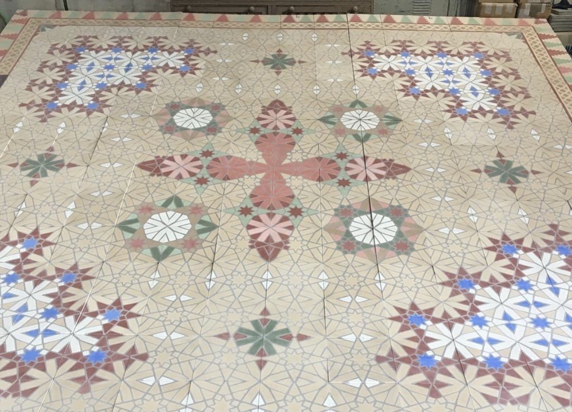 Nuestro artesano es minucioso para poder rellenar 324 casillas de color en una baldosa de 20 x 20 cm. son retos que le motivan para avanzar en cada uno de estos trabajos personalizados. Diseñamos y adaptamos cualquier dibujo a los espacios, todo ello personalizado. Realizamos logotipos y dibujos de toda índole, para vestir hasta el último rincón de hogares, negocios y sobre todo rehabilitaciones de edificios históricos para que puedan lucir en todo su explendor sin peerder esencia.